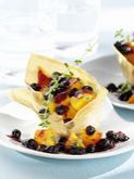 Süßkartoffel-Chips mit Joghurt-Blaubeer-Dip