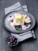 Kabeljaufilet an Blaubeer-Ingwer-Schaum